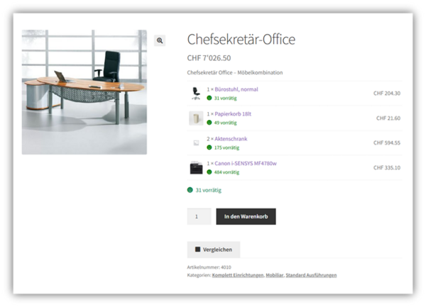 Kunden können aus einer Vielzahl von Produktvarianten wählen, die in Abacus als Attribute definiert und in WooCommerce umgesetzt werden. Dies ermöglicht eine nahtlose Produktanpassung direkt im Online-Shop: